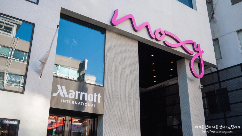 목시는 그 가운데에서도 가장 저렴한 이코노미 계열의 호텔이라고 볼 수 있습니다. 호텔의 콘셉트도 젊은 층을 겨냥하여 굉장히 힙한 분위기가 느껴지지요. 이제 막 호텔에 관심을 갖기 시작한 젊은이들이 가격 면에서나 분위기 면에서나 부담 없이 놀다 가기 좋은 호텔이랄까요? 알로프트도 비슷한 느낌인 것 같은데 목시가 좀 더 어린(?) 느낌입니다. 이 목시 호텔은 국내에는 아직 한 군데, 바로 제가 투숙한 목시 인사동만 있습니다. 2019년 11월에 오픈하여 이제 새 집 냄새가 사라진 지 얼마 안 된 신규 호텔이지요.