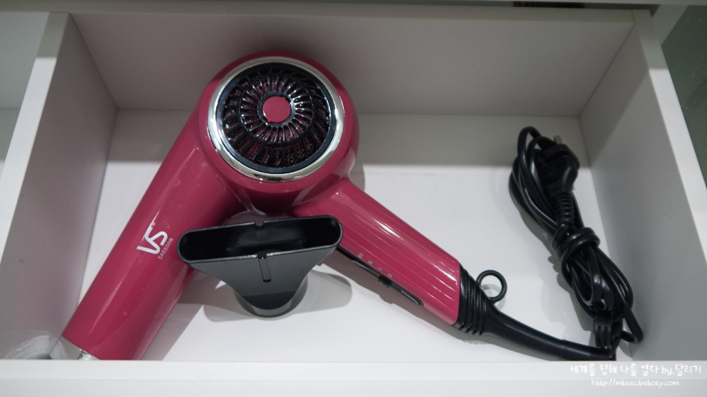 헤어 드라이기는 어디 있나 한참을 찾았는데요. 세면대 아래에 있던 서랍에 들어 있더라고요. 그냥 바람 잘 나오는 헤어 드라이기였어요.