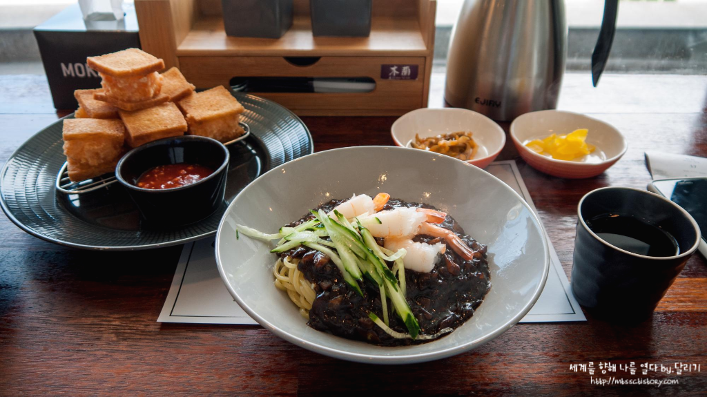 어떻게 시킬지 한참을 고민하다가, 멘보샤와 소고기짜장면 하나를 시켰어요 :)
