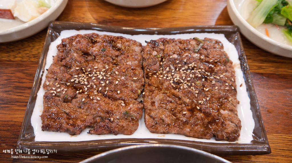 돼지를 쓰는 덕분에 담양 떡갈비보다는 비교적 더 저렴하게 먹을 수 있다는 장점이 있습니다 ㅎㅎ 또 식당마다 소+돼지고기의 배합 비율을 유지하여 독특한 식감을 만들어내기도 하지요.