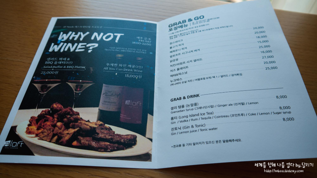 대신에 2층에 있는 레스토랑에서 음식을 픽업할 수 있는 투고(To Go) 서비스가 있었는데요. 문제는 금, 토요일에만 운영을 하더라고요(...). 레스토랑 디너도 마찬가지로 금, 토요일에만 운영을 하고 있었습니다. ㅠㅠ