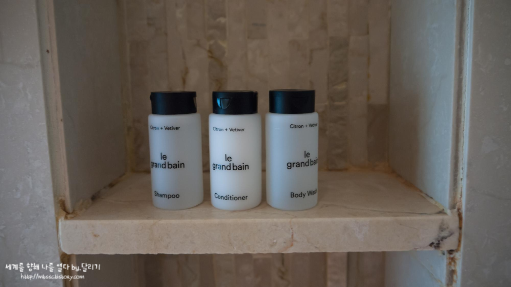 어메니티는 르 그랑 뱅 제품으로 준비되어 있었어요. 요거 지금은 폐업해서 사라진(...) #쉐라톤서울팔래스강남호텔 에서도 본 적 있는데요. 알고보니 쉐라톤 계열 호텔의 공통 어메니티라고 하더라고요. 향은 달달해서 나쁘지 않아요.