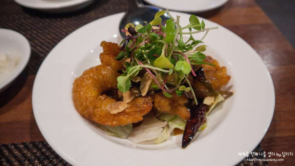 바삭하게 잘 튀긴 새우에 적당히 매콤한 소스로 맛을 낸 깐풍새우였어요.