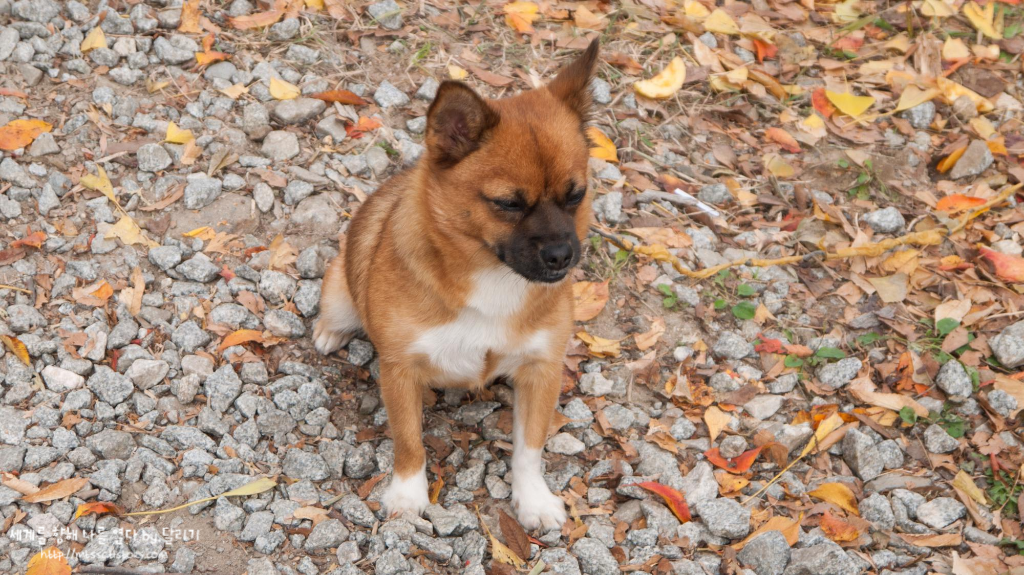 일주문 근처를 돌아다니던 귀여운 댕댕이 ㅋㅋㅋ 너무 시골 댕댕이스럽게 생겨서 귀여웠어요 :D