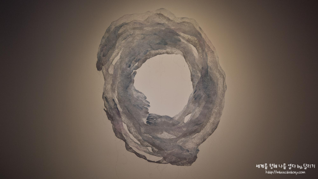 정소윤 실을 활용한 실 드로잉 작품이었어요. 많은 도시민들의 아픔을 목격한 정소윤 작가는 뒤엉켜 있으면서도 평온한 모습을 포착하려고 노력했다고 합니다. 그래서 그런지 촘촘하게 엮은 실 작품은 많은 이들을 위로하고자 하는 작가의 손길처럼 느껴졌어요.