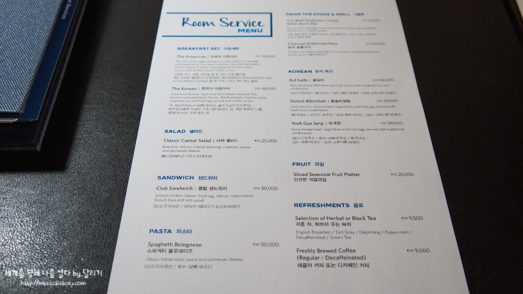 룸서비스 메뉴판도 한 번 봐줬는데, 이용은 안 했어요.
