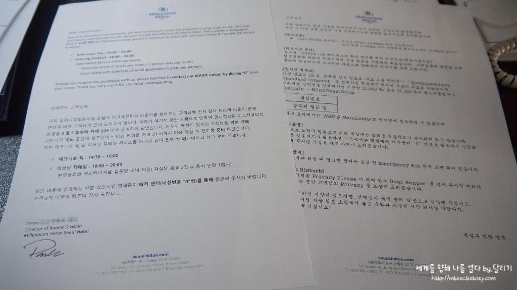 지난 포스트에서 소개해드렸던 <밀레니엄 서울 힐튼>(줄여서 밀튼) 호텔의 투숙 후기에 이어 오늘은 같은 날 이용했던 이그제큐티브 라운지를 소개해드릴게요. 이그제큐티브 라운지는 힐튼 다