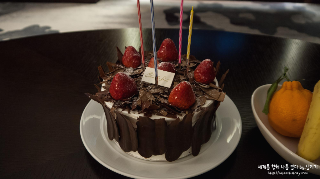 체크인할 때 요청드렸던 생일 케이크는 늦은 밤에 받았습니다. 친구가 생일 초 켜준다고 먼저 케이크 받아놓고 퍼먹지 말래서(ㅋㅋㅋ) 친구가 올 시간에 맞춰서, 밤에 가져다 달라고 요청했거든요.