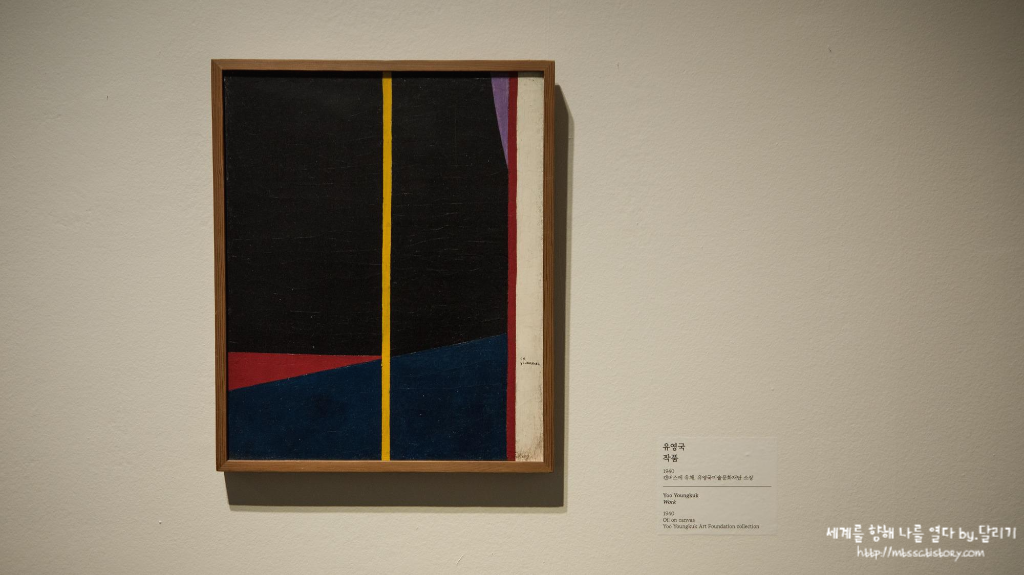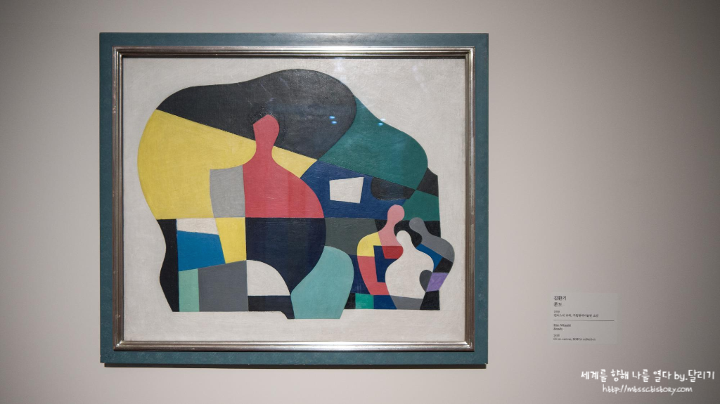 기하학적인 추상화를 그린 김환기(1913~1974)와 유영국(1916~2002)의 작품들도 있었습니다. 이 두 작가는 한국에서 추상 미술의 1세대로 꼽히는 화가들이라고 합니다.