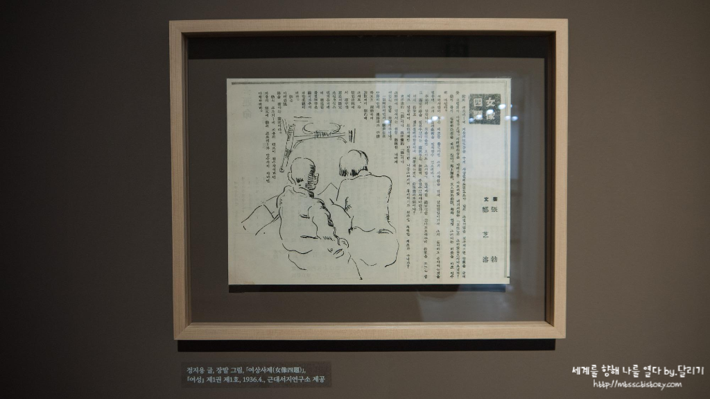 앞쪽 공간에는 근대 시기 신문에 실린 삽화들이 전시되어 있었는데요. 관람객들이 자유롭게 넘겨보면서 글과 삽화를 볼 수 있도록 해두었어요.