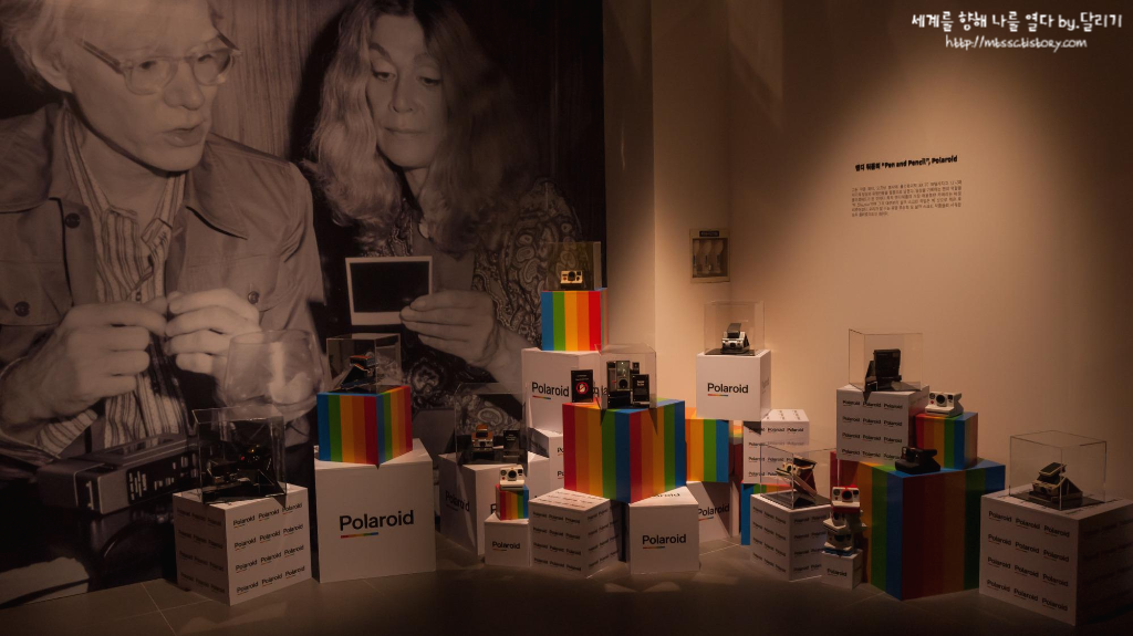 전시실 한쪽에는 많은 폴라로이드 사진기들이 있었는데요. 앤디 워홀이 자신에게 몰려드는 사람들의 초상을 제작하기 위해 사용했던 폴라로이드 사진기였습니다.