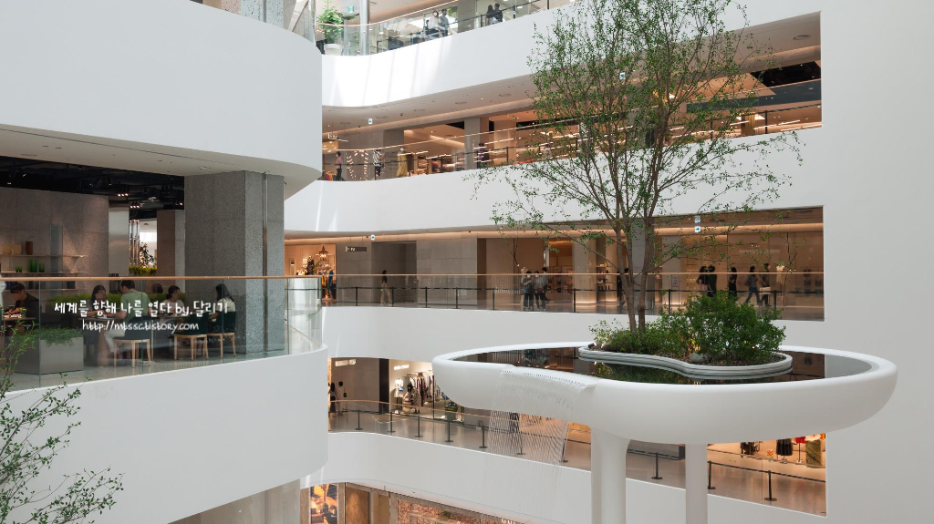 앤디워홀 전시가 열리는 #ALT.1 은 더 현대 서울 6층에 있어요. 에스컬레이터를 타고 6층까지 올라가면서 백화점이 어떻게 생겼나 대충 둘러봤습니다.