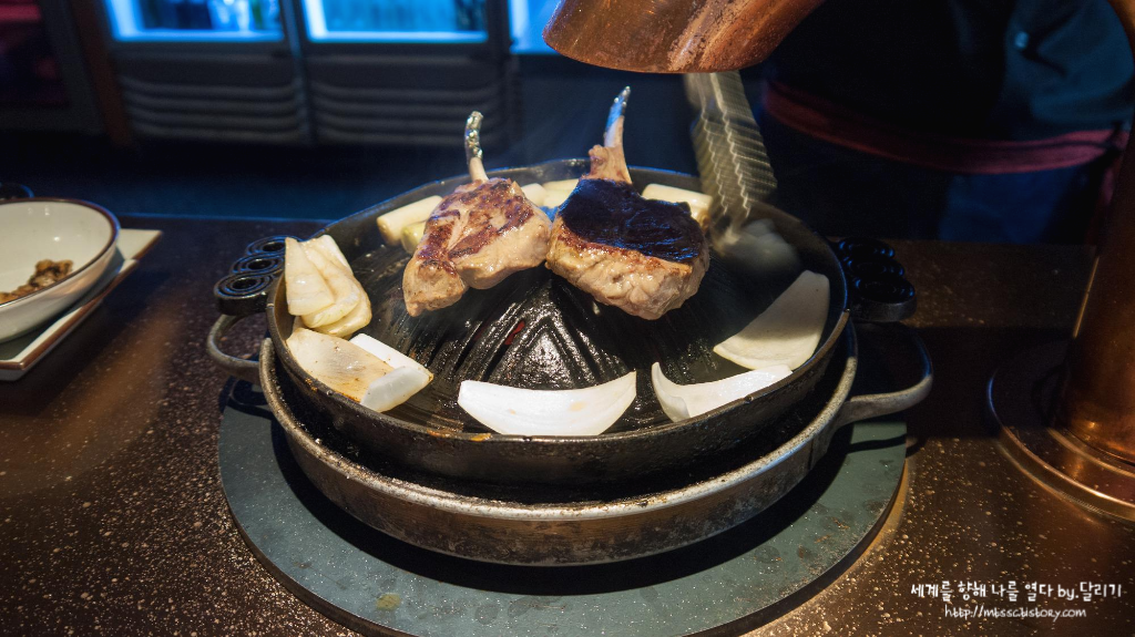 살치살은 그렇게 순삭해버리고, 바로 이어서 양갈비도 구워주십니다. 먹기 바빠서(...) 다 익은 고기 사진은 따로 안 찍었네요....... 양갈비는 뼈째 들고 뜯어먹는 재미가 있습니다 ㅎㅎ