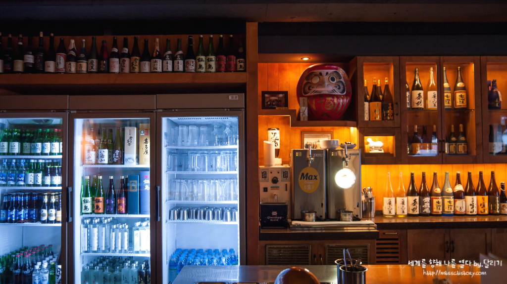 시간이 되어 자리를 안내 받았습니다. 정면에 일본 술들이 참 많이 보이더군요 ㅎㅎ