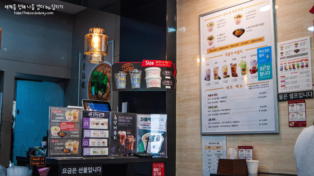 국수와 버블티를 함께 즐길 수 있는 세트 메뉴를 이용할 경우 약간의 할인이 되어서 좀 더 합리적으로 이용할 수 있습니다. 그래서 저는 항상 세트 메뉴로 먹었어요 ㅋㅋㅋ 버블티를 좋아하기도 하고요 ㅎㅎ