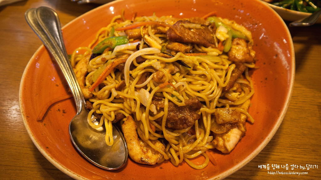 요것도 에그누들로 만든 면 요리로, 각종 야채와 고기를 넣고 볶은 로 메인이에요. 야채만 넣고 볶을 수도 있고, 새우나 닭, 소, 돼지고기 중 하나를 선택해서 넣을 수도 있는데요. 저희는 다 때려넣은(...) 콤보(₩21,800)로 시켰어요.
