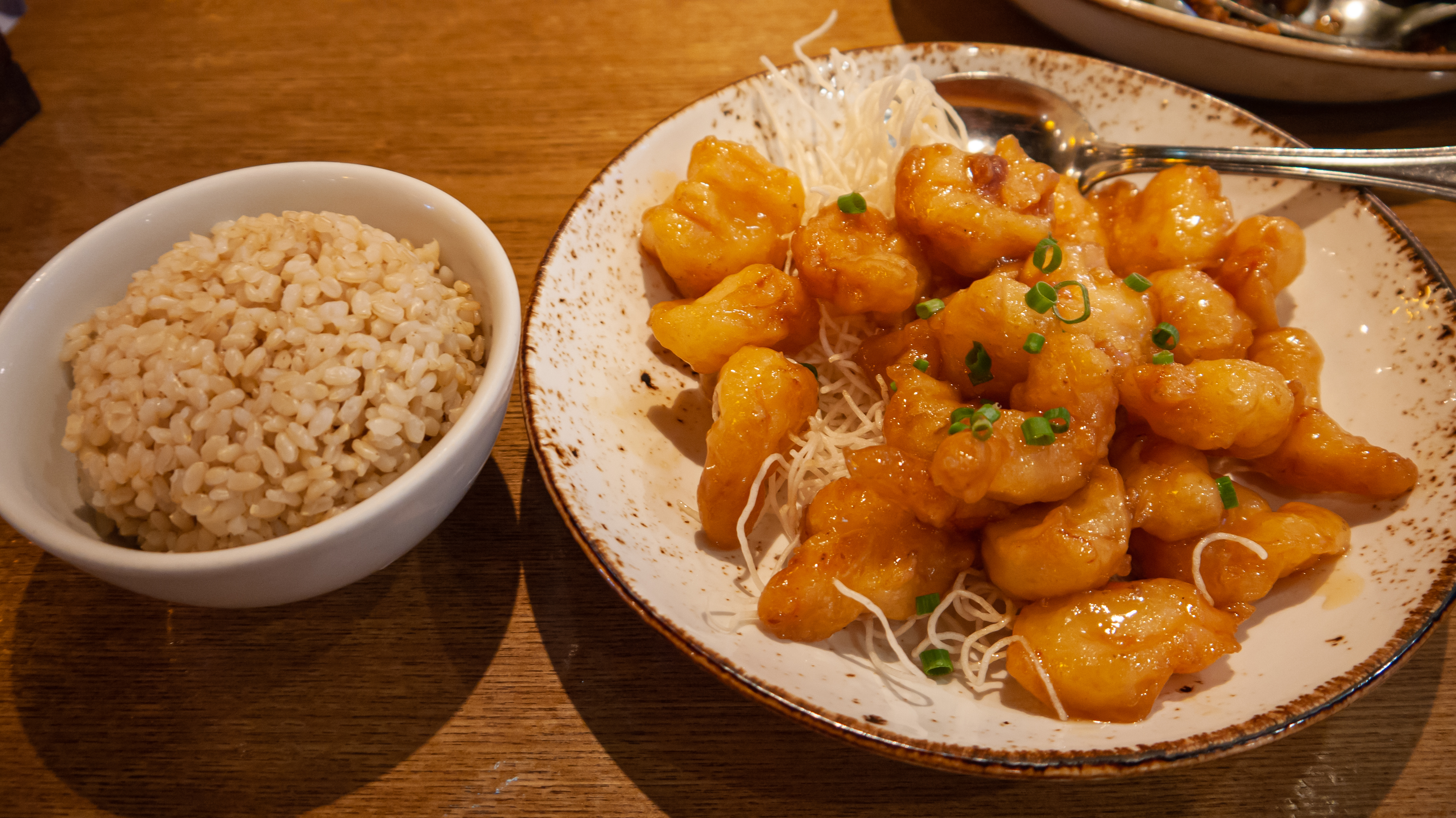 추가로 크리스피 허니 쉬림프(₩27,900)를 시켰어요. 얘는 튀긴 새우에 달짝지근한 소스를 버무린 요리인데요. 나오자마자 바로 먹으면 바삭하고 촉촉하니 맛있습니다. 달달하면서 약간 새콤했던 소스 맛도 괜찮았고요.