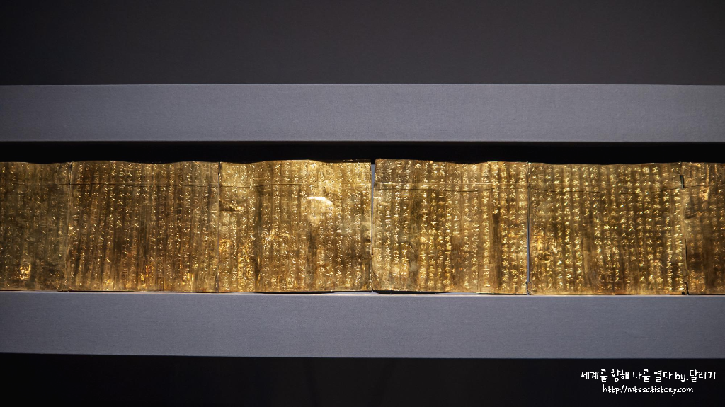 이 작은 금판은 사리를 탑 속에 봉안할 때의 내용을 담은 사리봉영기로, 칼로 글씨를 새기고 그 위에 붉은색을 입혀 글자가 잘 보이도록 만들어졌습니다. 섬세함이 느껴지는 유물이었지요.
