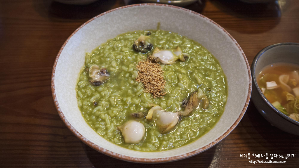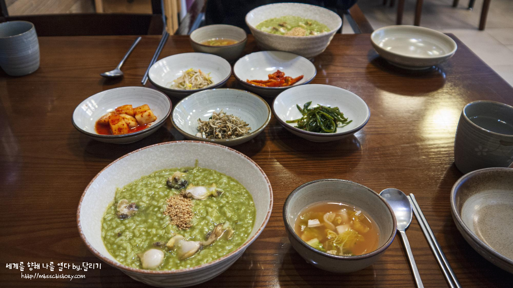 이 집 전복죽은 내장까지 넣어서 약간 풀색?에 가까운 녹색빛이 납니다. 전복도 많이 들어있고 고소해서 정말 맛있었어요! 간이 적당해서 좋았던 기본 반찬들과도 잘 어울립니다 ㅎㅎ