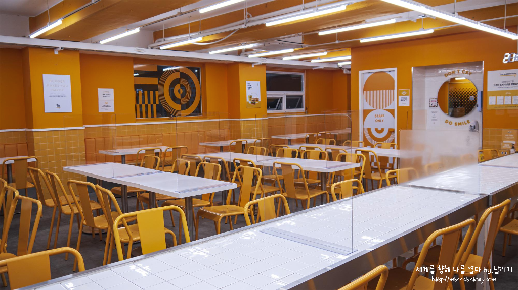 좌석이 많지만 그만큼 공간이 넓어 좌석 간격도 넓은 편이라 여유있게 식사할 수 있을 것 같았습니다. 무엇보다도 치즈버거가게라는 컨셉에 맞게 노란색의 인테리어가 넘 귀엽고 예뻤어요 ㅎㅎ 기회가 된다면 다음에는 매장에서 식사해봐도 좋을 것 같더라고요 :D