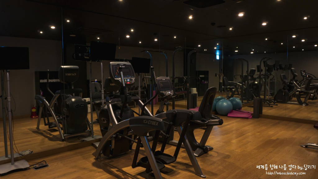 그리고 저희가 묵은 숙소 앞쪽으로는 작은 피트니스 룸도 마련되어 있었습니다. 창문도 없고, 크기가 넓지는 않았어요. 그래도 투숙하면서도 운동을 꼭 하셔야 하는 분이라면 여기서 간단하게 운동을 할 수 있겠지요 :)