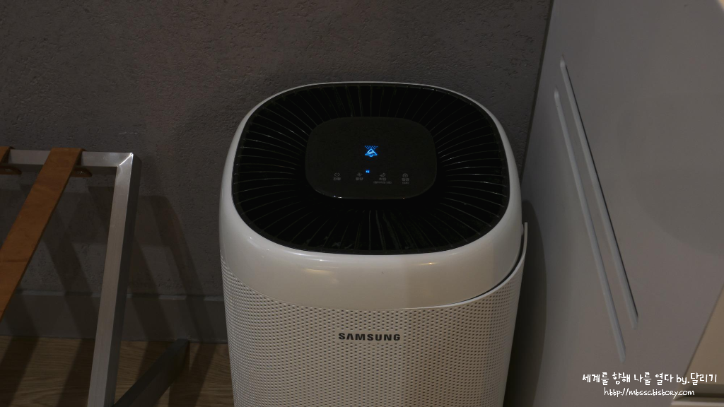 객실 안에는 공기 청정기가 열심히 돌아가고 있습니다. 호텔이 전체적으로 좀 어두운 편이라 눈에 보이지 않는 먼지가 많지 않을까 싶은데, 공기 청정기가 있으니 안심이 되더라고요.