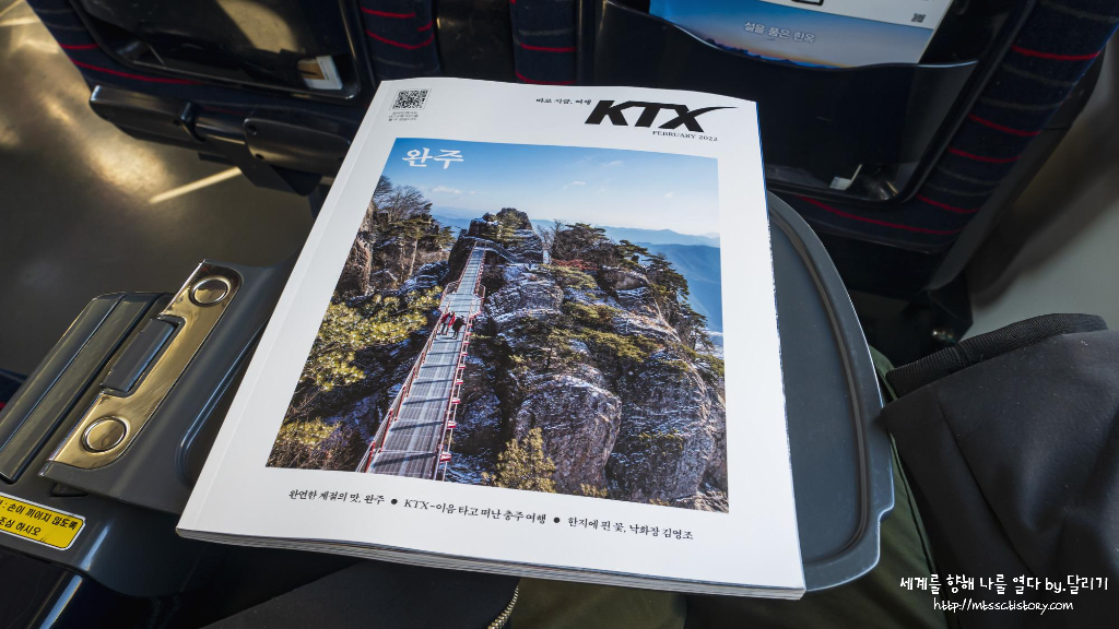 좌석 앞 자리에 비치되어 있는 KTX 매거진도 슬쩍 봐줍니다. 기차 여행과 관련된 정보들이 수록되어 여행 중 새로운 여행 계획을 세우게 만드는(?!) 매력을 가진 잡지죠 ㅎㅎ