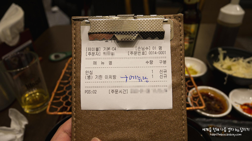 맥주는 바로 갖다줄지, 아니면 음식과 함께 줄지 물어보셔서 음식과 함께 가져 다 달라고 말씀드렸습니다.