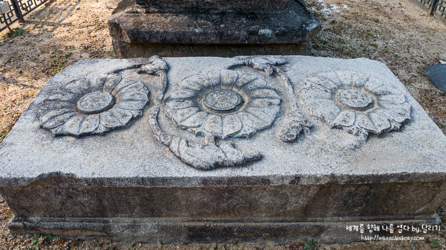 이 중 배례석은 예배를 드릴 때 사용하던 받침돌로, 연꽃 세 송이를 커다랗게 새겨놓았는데요. 은진미륵이 조성된 시기에 제작된 것으로 추정된다고 합니다. 현재는 충청남도유형문화재에 지정되어 있어요.