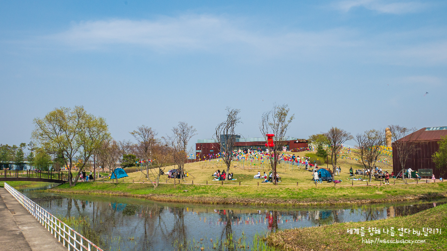 SNS 사진 업로드용으로 유명한 바람의 언덕과 잔잔한 연못, 그리고 드문드문 돗자리나 텐트 설치하고 쉬고 있는 사람들을 보고 있으니 마음이 여유로워집니다.복잡하고 화려한 도시도 좋아하지만, 가끔은 이렇게 비교적 여유로운 공간에서 마음 편히 쉬는 것도 좋아해요.