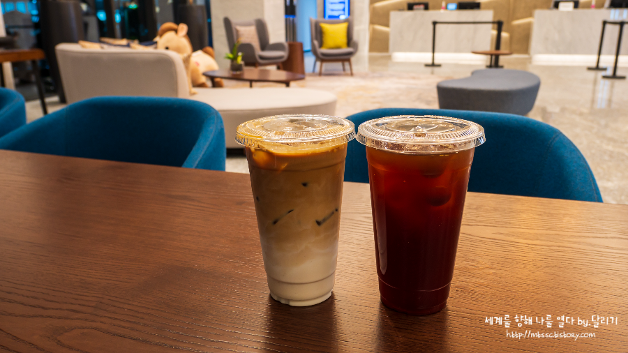 이 날도 저녁에 디카페인으로 아아, 아이스라떼 한 잔씩 사서 객실에서 호로록 마셨습니다 ㅎㅎ 25% 할인받아서 두 잔 합하여 ₩7,500 나왔어요. 가격 정말 착해요 :D