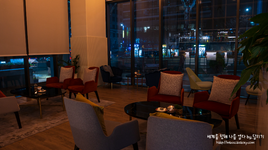 먼저 로비 층에 위치한 카페 253부터 소개할게요. 공간이 넓지는 않지만 적당히 괜찮은 분위기와 호텔 라운지 치고는 합리적인 가격으로 간단하게 다과를 이용할 수 있는 곳이에요.