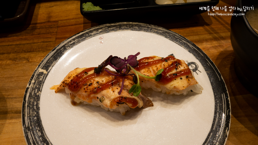다른 회전 초밥집과 마찬가지로 컨베이어 벨트 위의 초밥을 가져가서 먹어도 되고요. 먹고 싶은 초밥은 별도로 주문을 해서 먹을 수도 있어요.