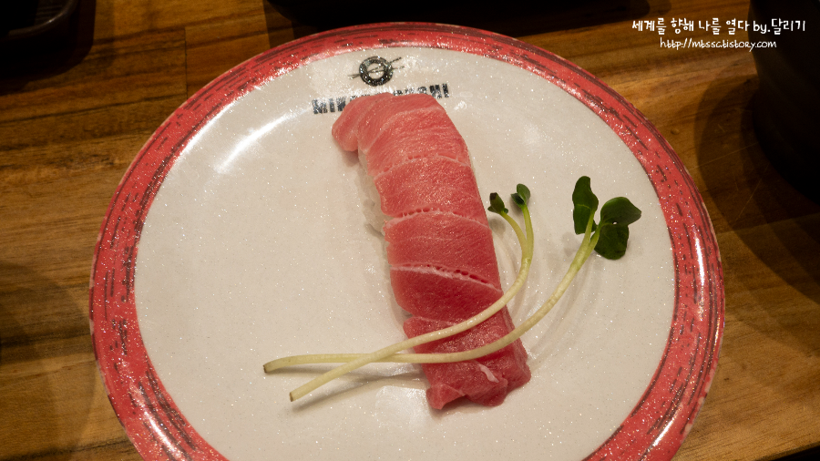 이번에는 3,800원짜리 참다랑어뱃살초밥도 먹어봤습니다. 가격은 비싸지만 하나밖에 안 주는데요. 그만큼 맛있어요 ㅎㅎ