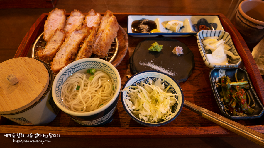정갈한 한상차림으로 나옵니다 ㅎㅎ 소스, 트러플 소금과 와사비, 새우젓, 레몬 등 돈가스와 함께 먹을 수 있는 것들이 다양하게 나와요. 취향에 따라 다양한 방법으로 먹을 수 있고, 질리지 않게 먹을 수 있다는 장점이 있지요 ㅎㅎ