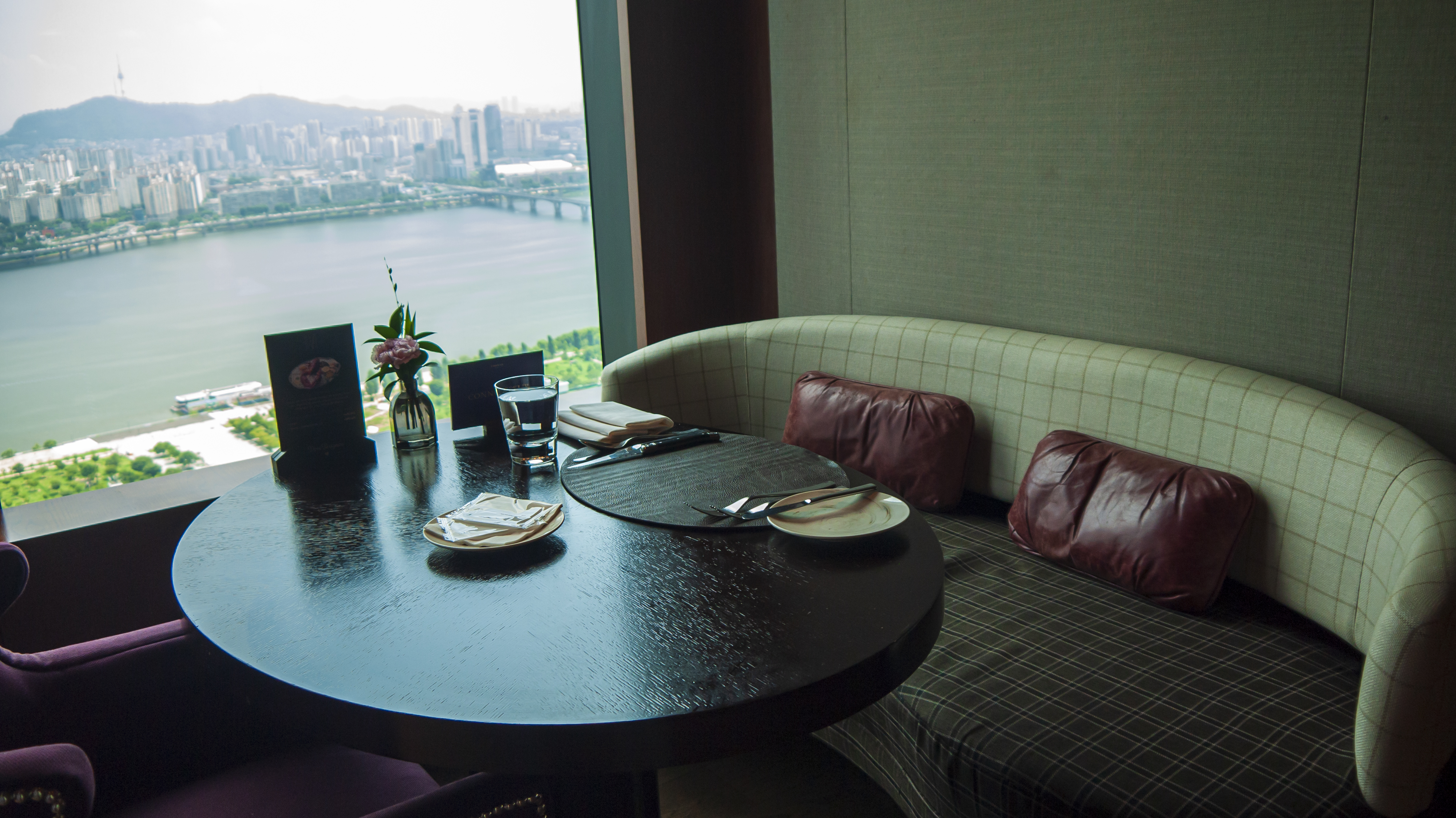 보통 라운지에 오면 한강이 보이는 자리를 앉게 되는데요. 이 날 저는 객실에서 한강뷰를 실컷 봐서, 라운지에서는 반대편 도심뷰 방향의 자리로 앉았어요.