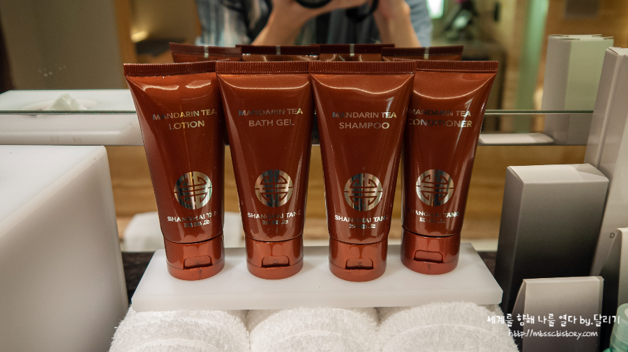 어메니티는 상하이탕으로 제공되었는데요. 최근에 콘래드 서울 호텔을 방문했을 땐 바이레도 제품으로 바뀌었어요. 개인적으로는 상하이탕 만다린티 향을 너무 좋아했어서 아쉽지만, 바이레도 어메니티도 향이 좋아요.