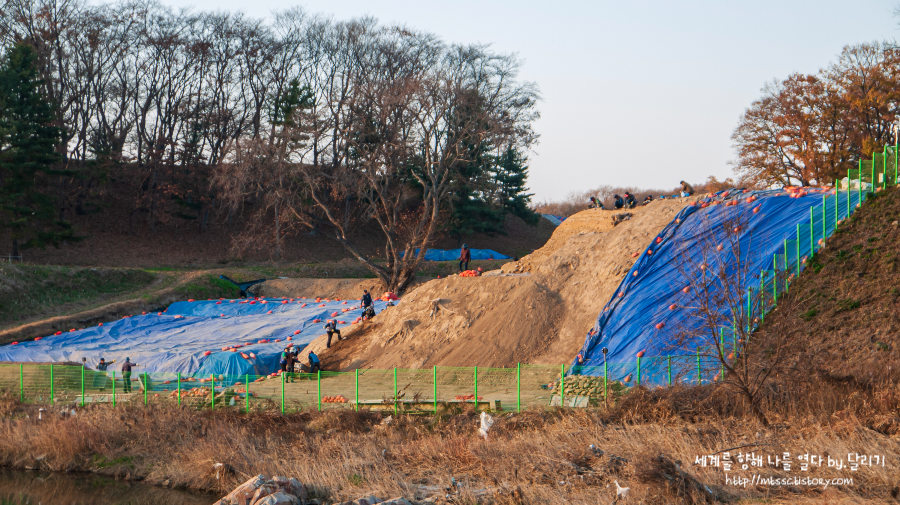 단순히 비슷한 시기에 축조되어 생각난 것은 아니고요. 둘 다 흙으로 쌓은 토성이고, 자연 해자(월성은 남천, 몽촌토성은 성내천)가 둘러싸고 있으며, 세월의 영향으로 현재는 야트막한 언덕(?)같이 되어버린 모양새 등이 비슷하다 보니 그렇더라고요 :)