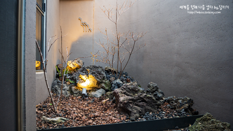 다만 마당이 매우 작아서 정원은 밖에서 감상하기보다는 아래에서 소개해드릴 침실 공간 창문을 통해 감상하면 딱 좋더라고요.
