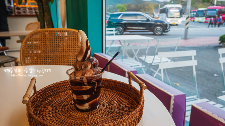 다른 분들의 후기를 보니 이 집은 커피와 크로플이 맛있다던데요. 저녁 시간이라 커피는 안 땡겼고 추어탕 먹고 왔더니 제 뱃속에 크로플이 들어갈 공간이 남아있지 않아서, 저는 우유 아이스크림에 초코 시럽 추가(₩4,500)해서 먹었어요 ㅋㅋㅋ