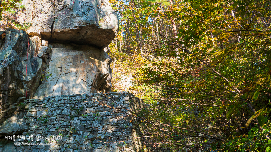 아래쪽에서 올려다 본 서산 마애불 마애불까지 지형을 크게 해치지 않으면서도 관광객들이 잘 이동할 수 있도록 돌계단길을 만들어두어 이동은 어렵지 않습니다. (아... 그러고보니 휠체어를 타신 분들은 어떡하죠...?) 짧은 구간이지만 계곡 안쪽으로 들어가는 길을 걸으며 이런 산속에 마애불을 조성한 백제인들의 마음을 상상해 봅니다 ㅎㅎ