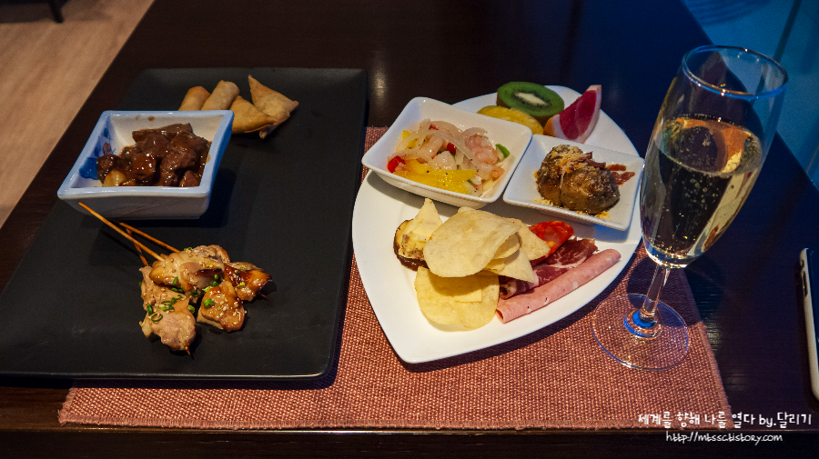 객실로 올라가서 좀 쉬다가 해피아워(18:00-20:00) 시간이 되어 다시 라운지로 내려왔어요.
