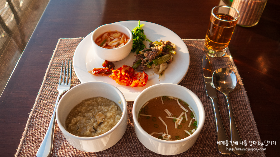 라운지에서와 마찬가지로 또 창가 쪽에 앉아 해변 감상하면서 밥을 먹습니다.