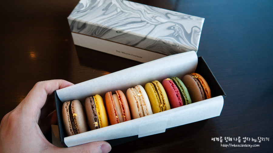 객실로 들어오는 길에 로비에 있는 조선 델리에서 마카롱 세트 샀어요.