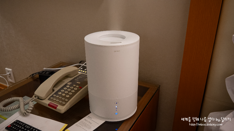 객실로 돌아왔는데 겨울이라 히터를 세게 틀어놨더니 너무 건조해서 가습기 받아서 틀어놓고요.
