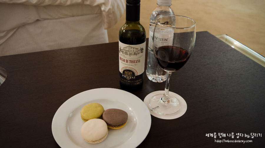 체크인할 때 객실에 있던 마카롱과 와인을 꺼내 먹고 푹 잤습니다 ㅎㅎ