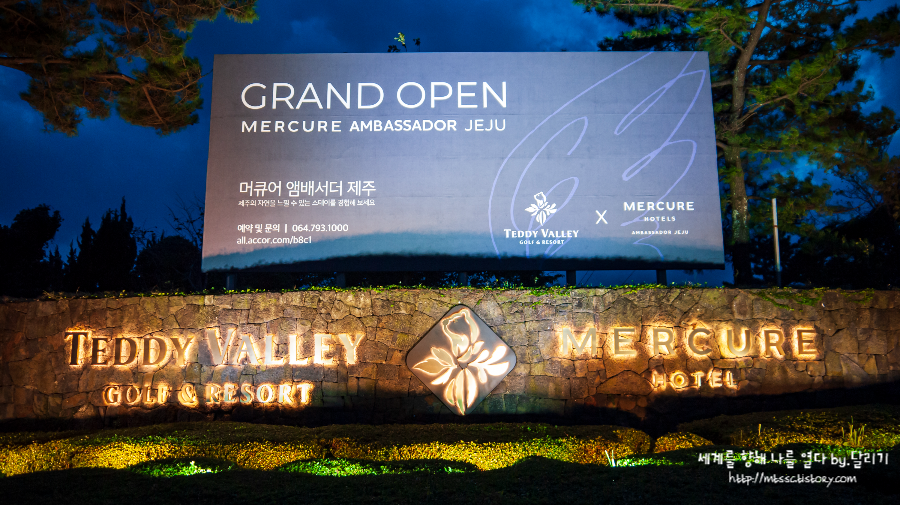 테디밸리 리조트 입구에서 조금 걸어 들어오면 우측에 머큐어 제주 호텔이 보입니다. 70여 개의 객실을 가진 호텔로 규모는 그리 크지 않았는데요. 호텔 외관에서 느껴지는 분위기는 휴양지의 아담한, 그리고 살짝 오래된 호텔 분위기였습니다 :)
