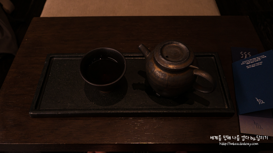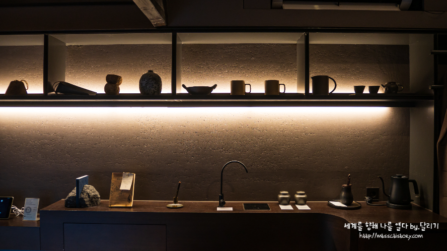 찻잎과 정수기도 있었어요. 이 아래쪽에 미니 냉장고도 하나 있어서 조식 키트는 냉장고에 넣어두었습니다 ㅎㅎ