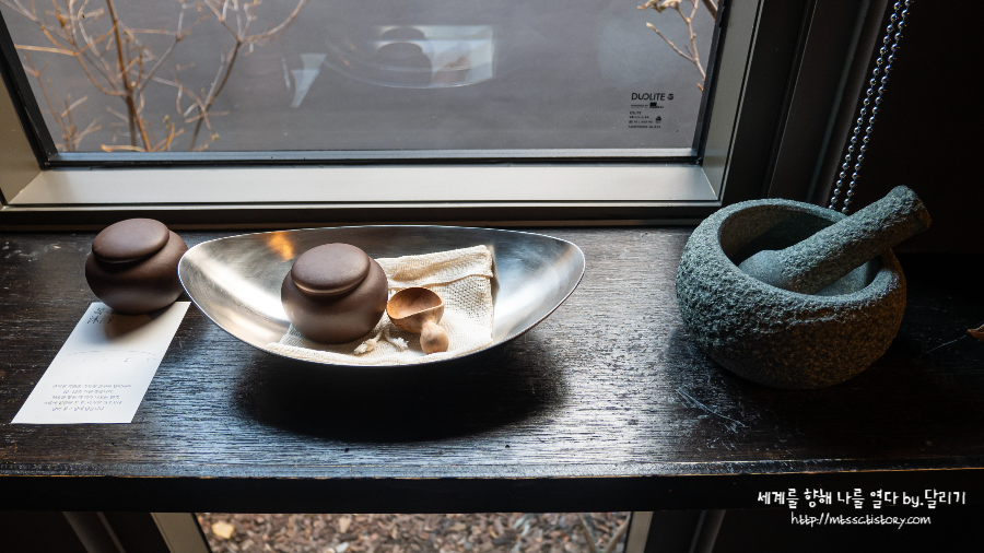 핸드 워시, 드라이기, 그리고 치약이 있었는데 특이하게도 소금 가루 치약이 있었어요 ㅎㅎㅎ 개운하기는 한데 처음 써봐서 영 불편했던... ㅋㅋㅋ